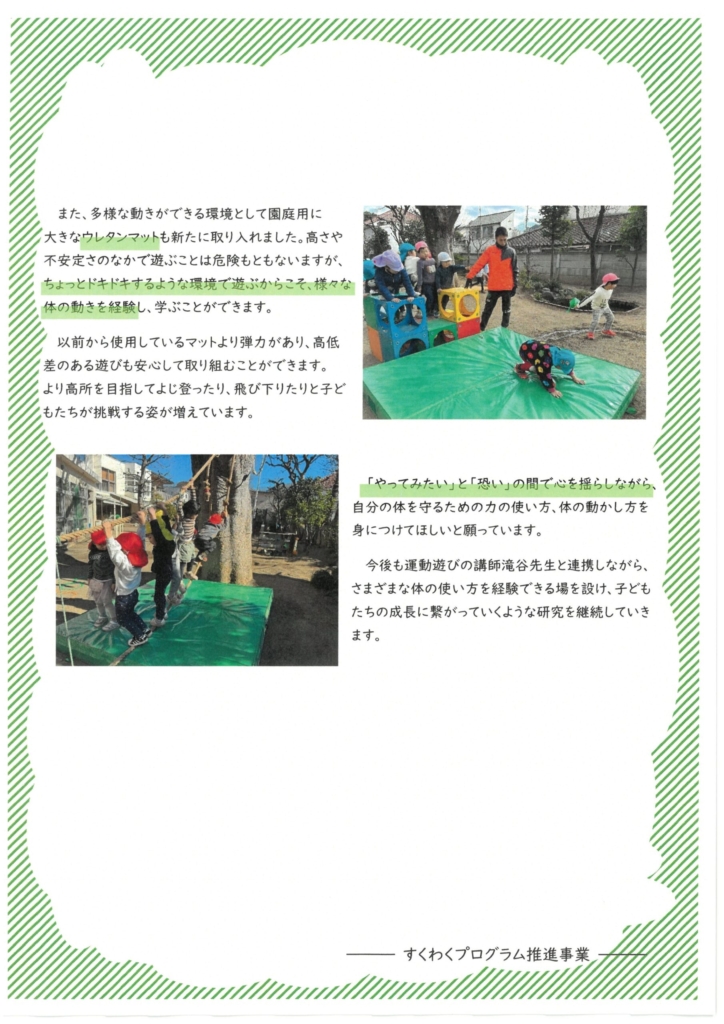 【園内研究】すくわくプログラム 多様な動きができる環境に向けた実践