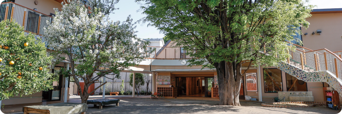平成17年2月に現在の年中・年長棟、令和4年4月に年少棟、令和5年に職員室棟が完成いたしました。幼児期の子どもたちが生活する場としてふさわしい、異年齢交流・多様な活動の保障・自然の教育力に重きを置いて設計いたしました。